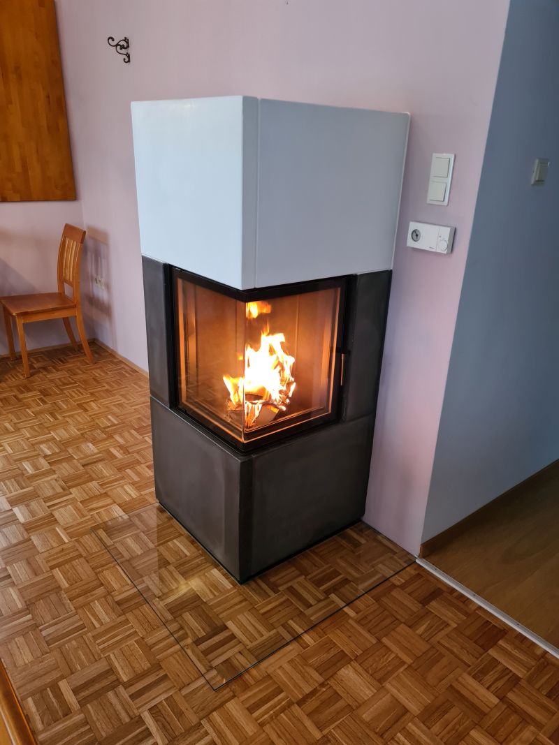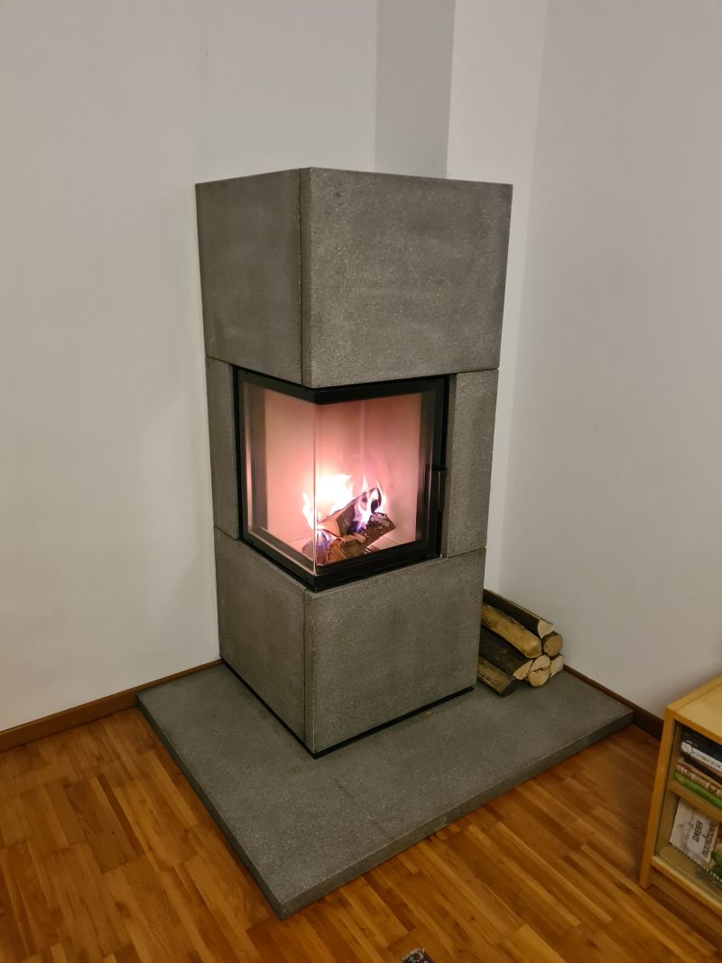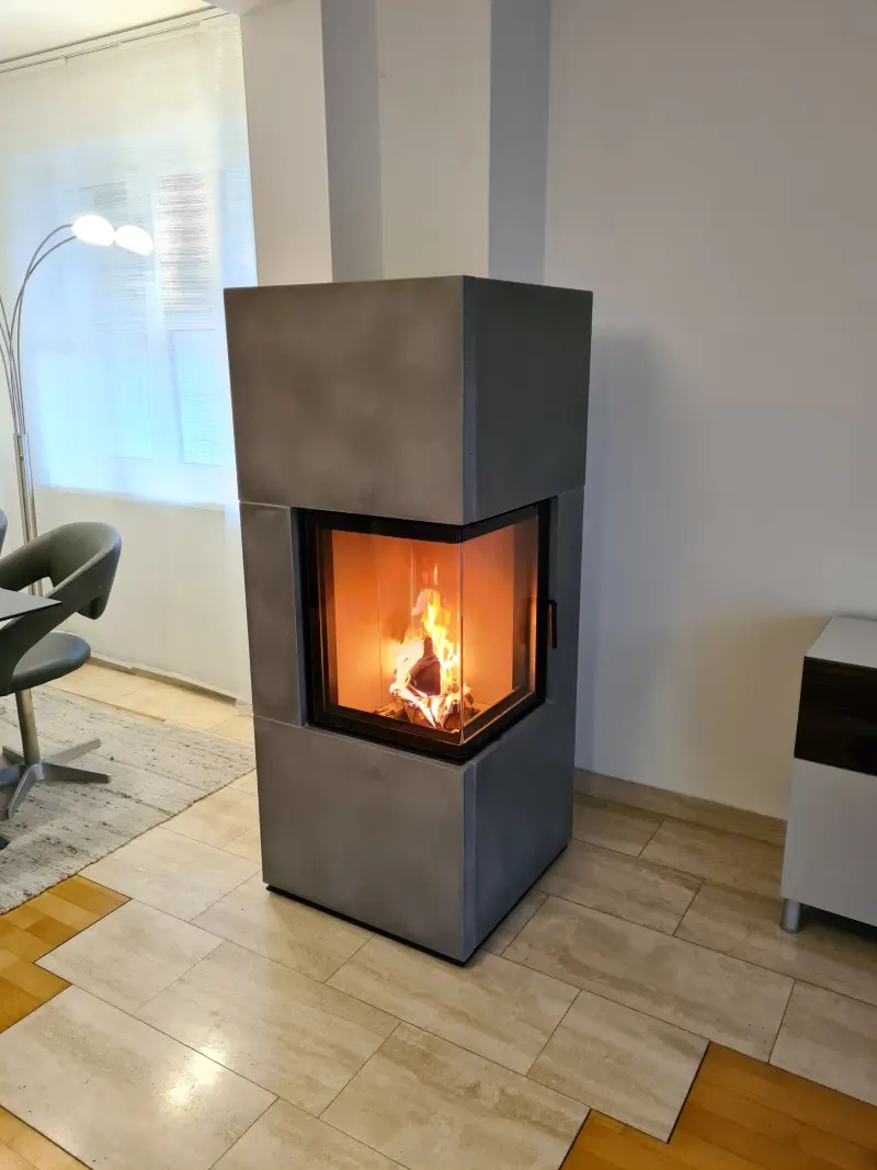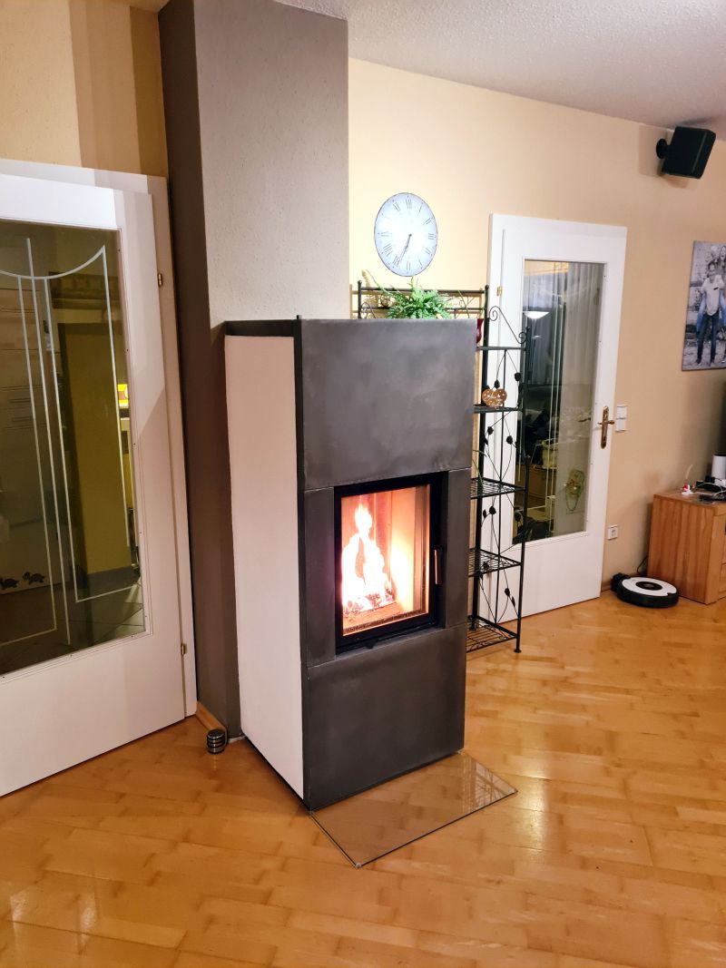 Wir wollten einen Ofen zwischen Heizkamin und Kaminofen erschaffen, der platzsparend ist, aber dennoch über eine hohe Speicherfähigkeit verfügt.