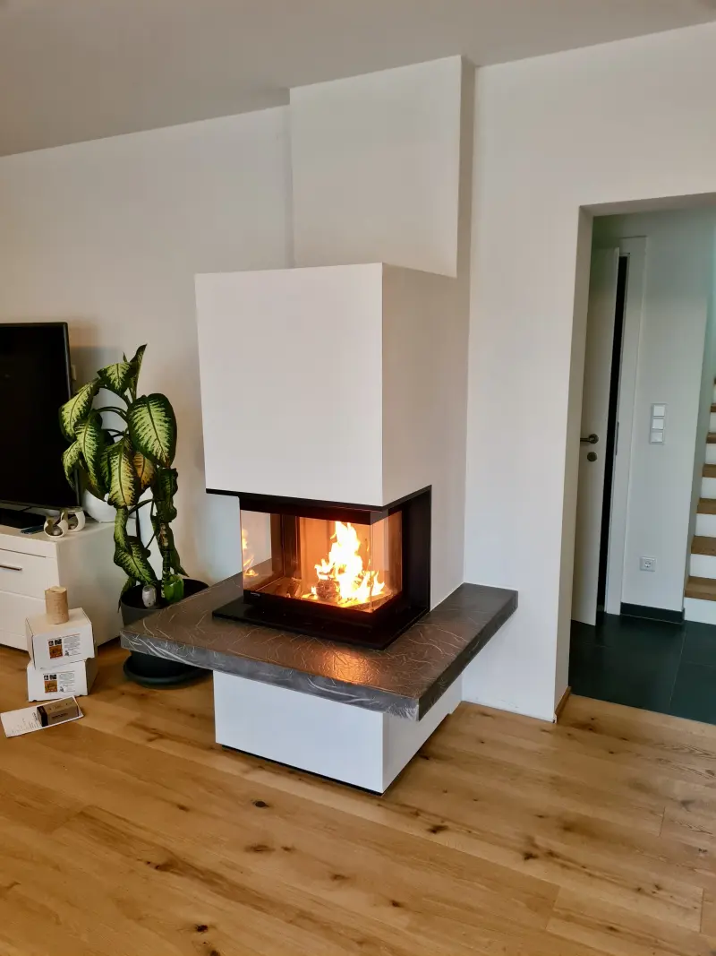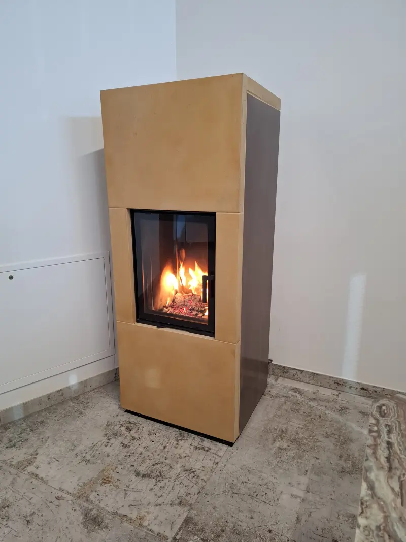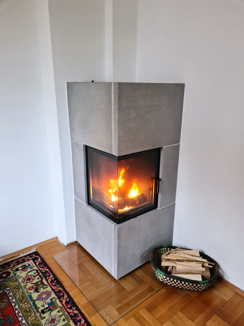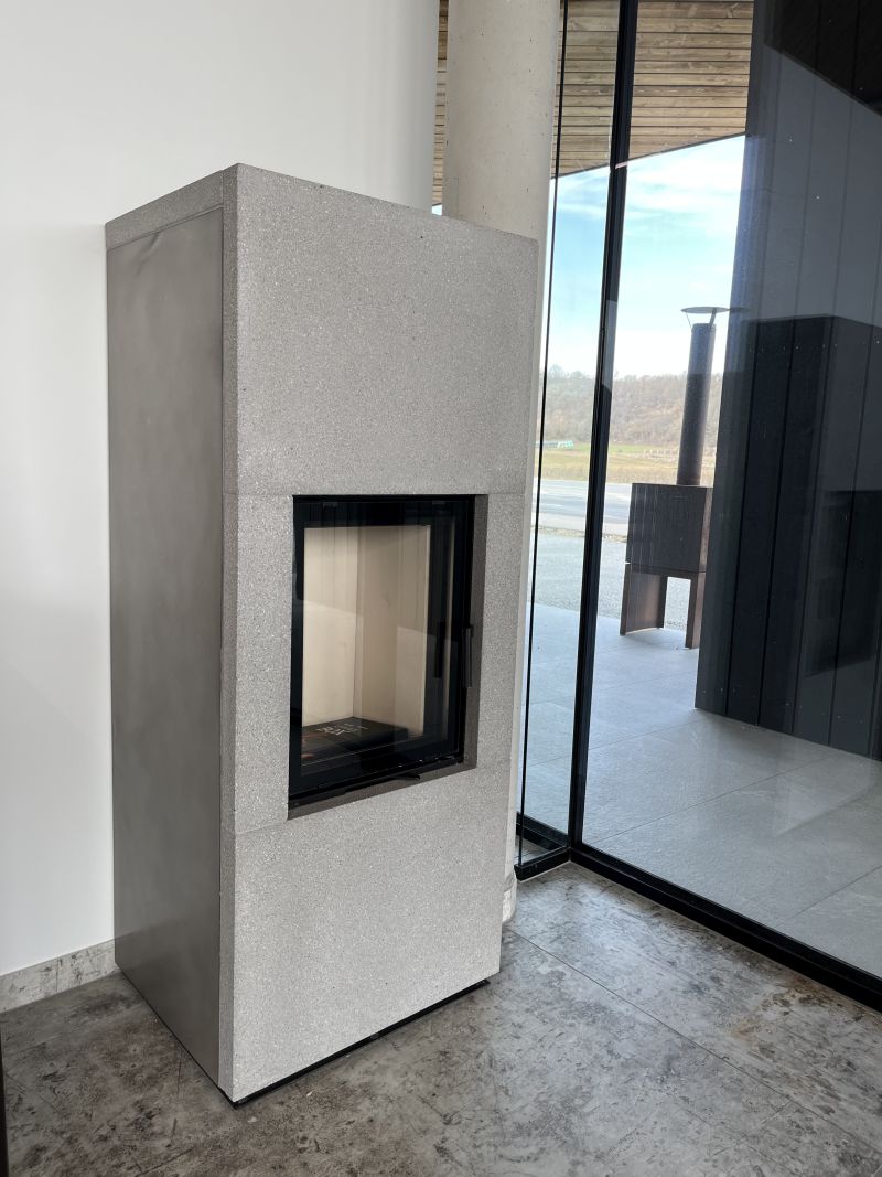 Wir wollten einen Ofen zwischen Heizkamin und Kaminofen erschaffen, der platzsparend ist, aber dennoch über eine hohe Speicherfähigkeit verfügt.